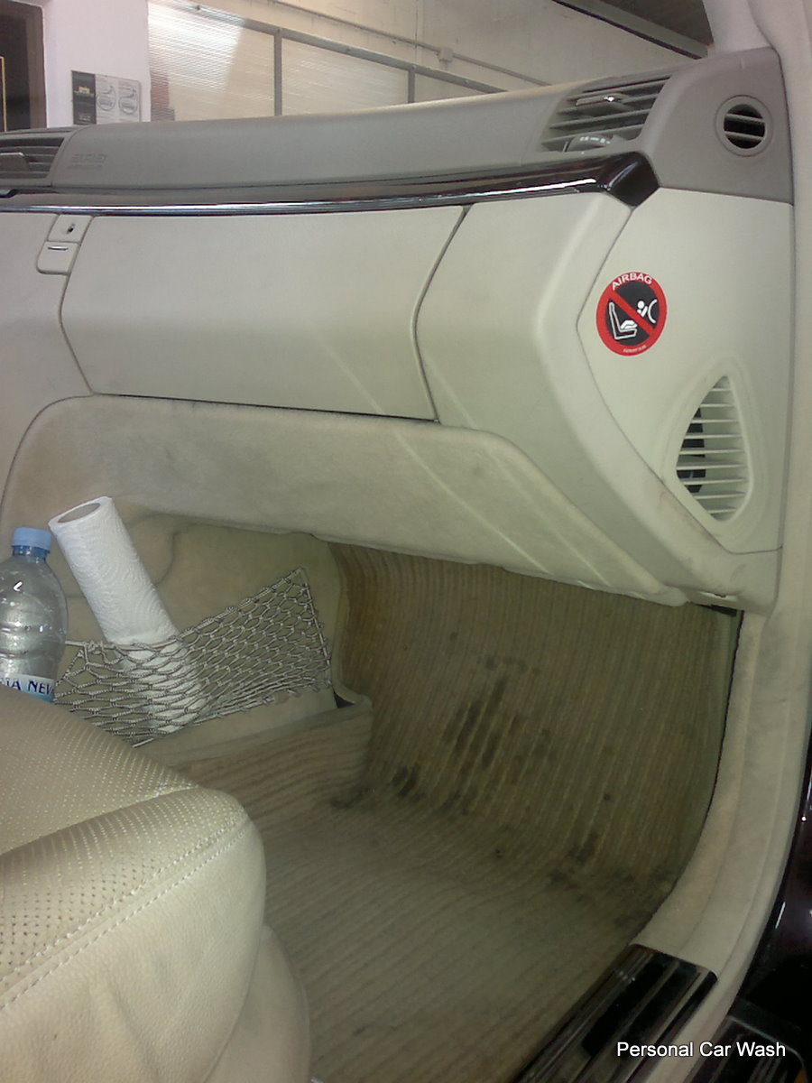 INTERIOR: Aspirado y soplado de todo el habitáculo, limpieza con máquina de inyección-extracción de todo la tapicería textil (puertas, moqueta, alfombras, bajo de los sillones delanteros), limpieza a mano del techo, limpieza a fondo de todas las rejillas de ventilación, que no son pocas, limpieza de las juntas de gomas de las puertas, abrillantado de todas las molduras y cromados devolviendo así todo su esplendor y brillo, acondicionado de todos los plásticos protegiéndolos contra los Rayos UV, Limpieza y posterior Acondicionamiento de los Asientos de Cuero, en fin todo el habitáculo, incluyendo una buena dosis de OZONO.