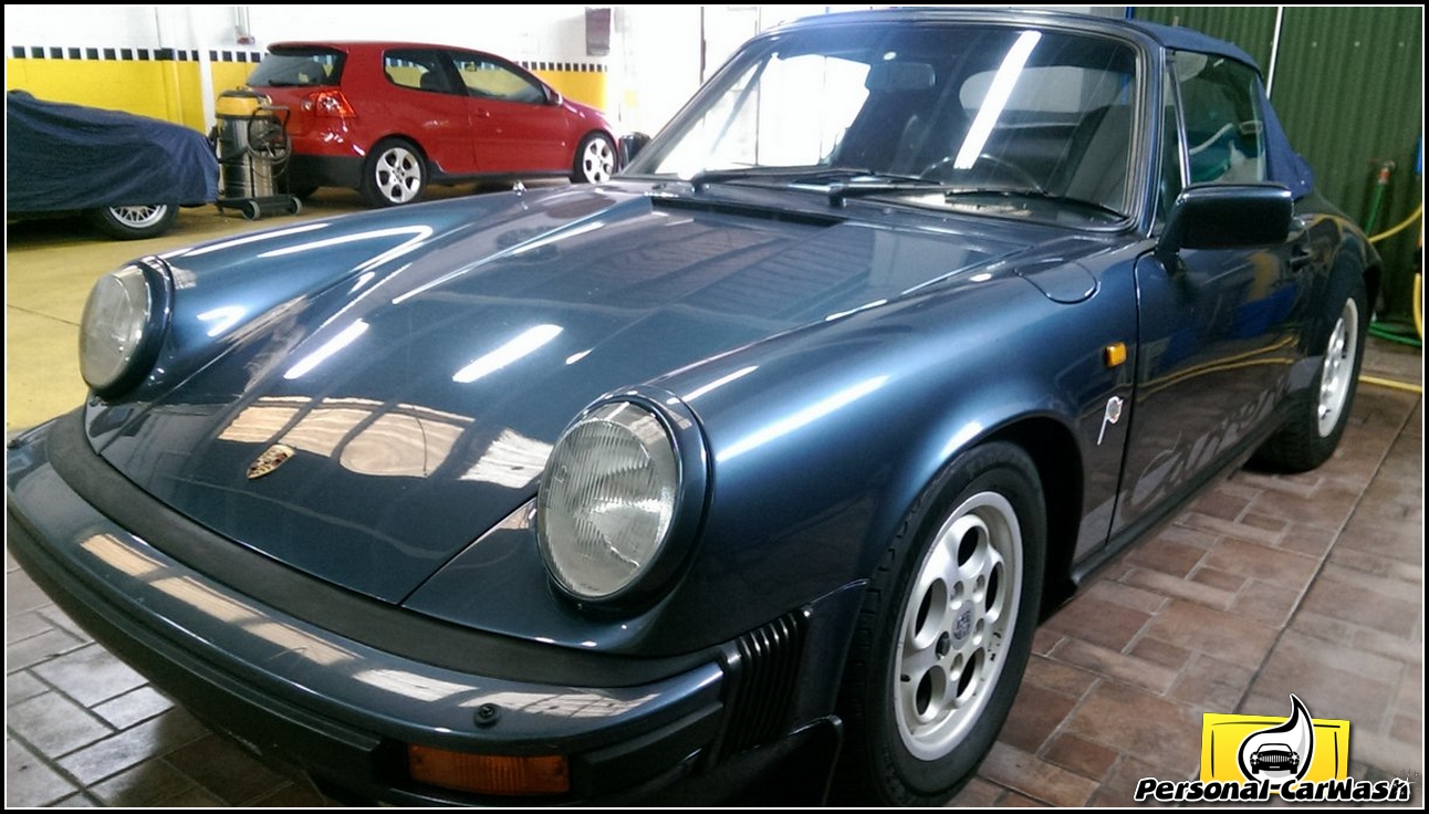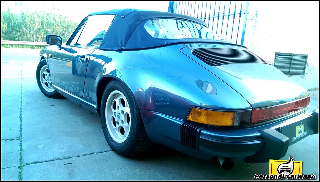 Traemos esta vez un trabajo que realizamos a un precioso Porsche 911 SC Cabrio. El estado general era muy bueno aunque la pintura, con el paso del tiempo, había perdido fuerza y brillo así que lo que le hicimos fue un pulido no muy agresivo en 2 pasos (medio y acabado) para devolverle todo su esplendor. Al interior se le realizó un tratamiento integral con limpieza e hidratación del cuero, ah! la capota también se limpió y se protegió con productos específicos para ello.